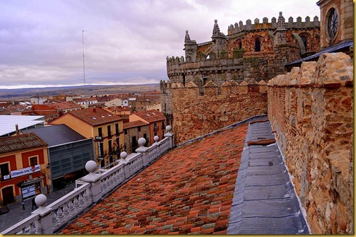 I start with a journey up the walls. There are several routes and I begin at the Puerta Del Carmen , or the Gate of El Carmen, that takes its name from a Carmelite convent attached to the walls . I walk right atop the wall, along the entire length, only to see them stretching endlessly for miles.. The town now wears a fresh coat of paint as Avila shows me her true colours. Huddled below are several pink, white and red houses looking petite as the walls wrap them in their folds. As we look down the sloping roof while palaces and cathedrals dot the landscape, my guide , Blanca shows me some stone sculptures of bulls or boars carved on the surface of the walls that date back to a period before the Romans arrived. Standing there, I am lost in my thoughts, with the wind blowing right into my face. I imagine it during the medieval era when knights guarded their fortresses and horse hoofs trotted in the distance.