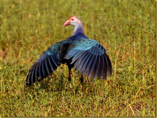 A flock of lesser whistling ducks announce their presence whistling out loudly as they frolic in the waters for a while, splashing before settling down. They are huge in numbers compared to the flock of garganeys that float quietly. I look at them through the binoculars as they curl up in the waters. The purple swamp hens strike several poses as they create a stark contrast in the marshland . An open stork bill stands quietly, getting a bit of tan, while the two jacanas � the bronze winged and the pheasant tailed are rather shy, the latter especially showing off its long curved tail before disappearing into the waters. A purple heron is in flight and lands near the flock of lesser whistling ducks. Coots and grebes lose themselves in the crowd.